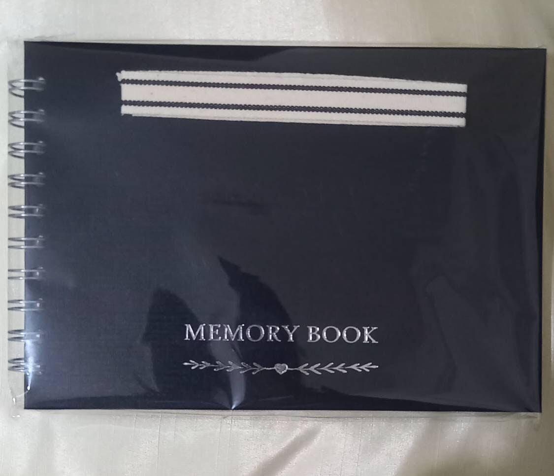 - Textured black hard-backed cover with 'Memory Book' embossed in silver